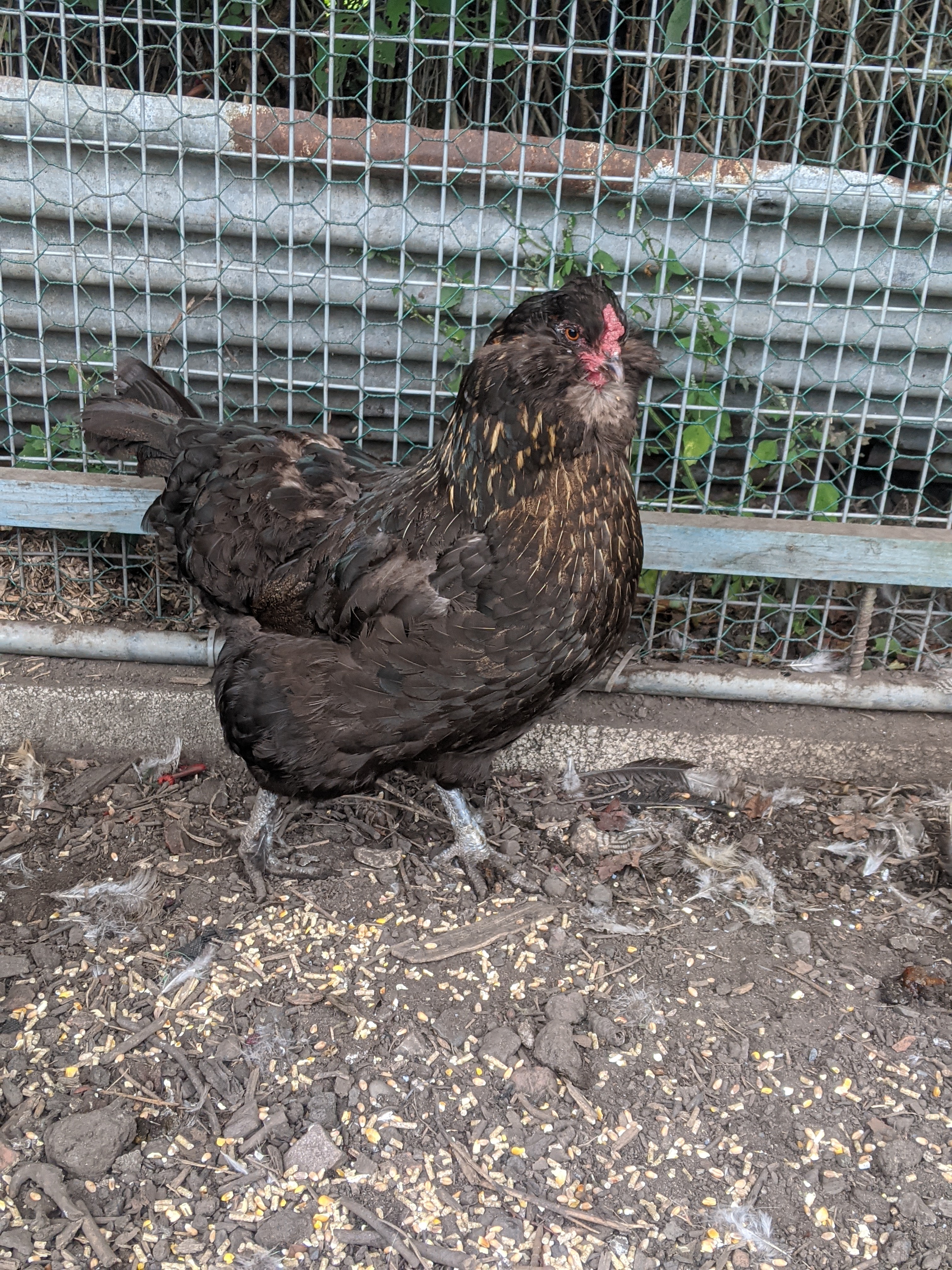 Over in the new coop, the beginnings of a truce between the Buff Orpington and the other three girls. When I arrived the Orpington was out in the run but she quickly retreated to the nest box as I threw some food out for them all. Lilja seems to be all leg after moulting a large proportion of her feathers. Leia, always following Lilja’s lead, has shed so many feathers that she is literally half the size she was. I hope they decide to grow their feathers back quickly as the weather is definitely cooling and the nights are drawing in. Sadie seems to be enjoying a break from being bottom of the pecking order and in comparison to the other two, has a healthy amount of black shiny feathers!