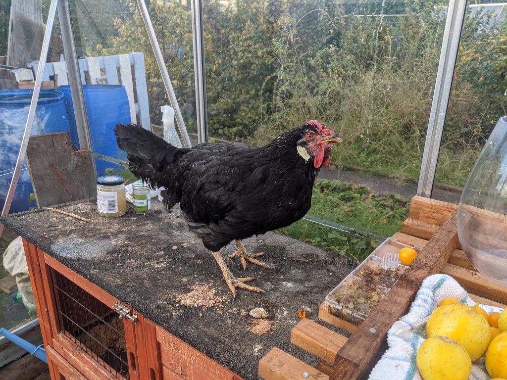 So today I went down twice to try and help out Cliffs black leghorn. She didn’t look very good this morning. Fortunately, I had some Flubenvet powder left from when I last wormed our flock. I measured out her food carefully and added half a scoop of powder. Mixing it in thoroughly took time and I made sure to remove all other food to ensure she eats her medicated pellets.