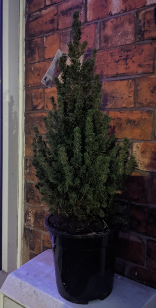 With another looming lockdown which would ruin our Christmas plans for the second year in a row, I decided to cheer myself up by planning on how to decorate the shed. Over the past few years, I had wanted to have a little Christmas tree outside the shed with lights. A good idea but I have never managed to be organised enough to buy a tree, pot it on and decorate it.