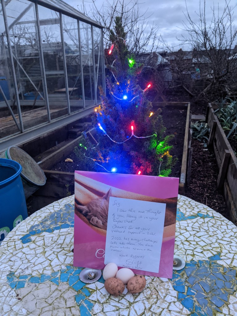 I ambled down to the allotment this afternoon, intending to have a quick visit. I ended up staying for quite a bit longer. When I opened up the shed, I found a lovely surprise waiting for me! A beautiful calendar to go up in the shed with a thoughtful note attached. There really is something so special about how people look out for one another on site.