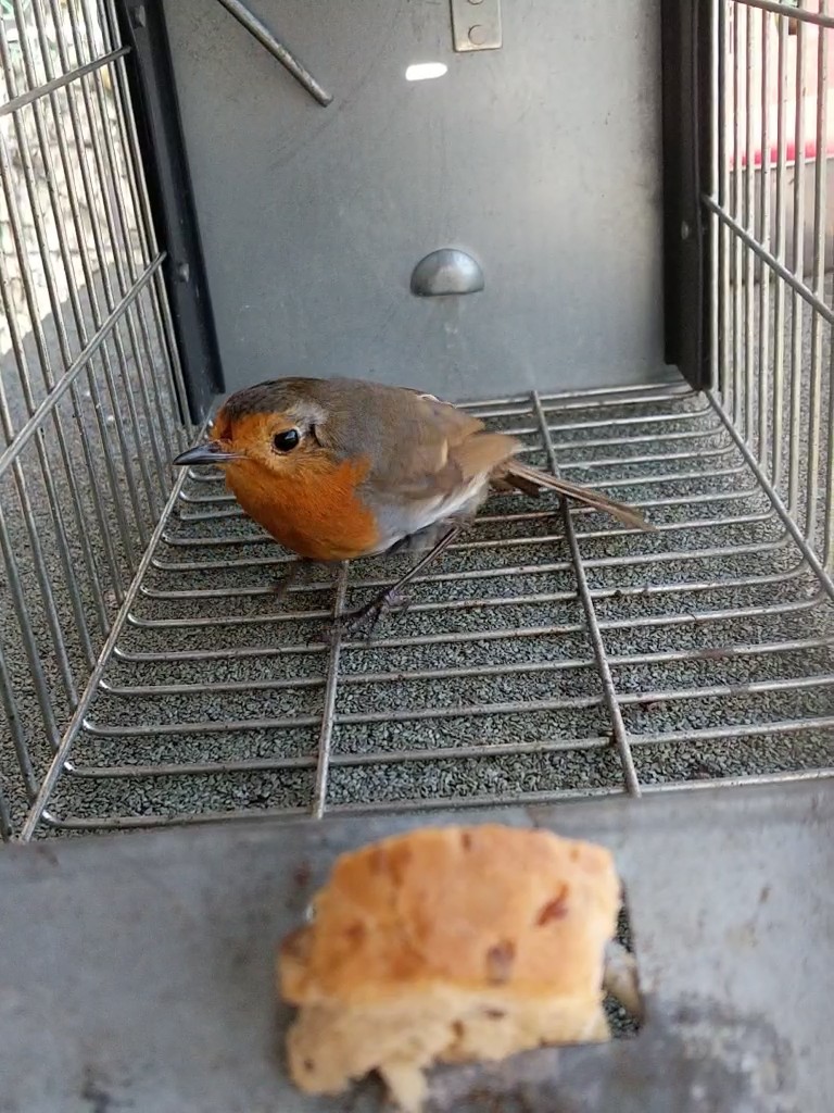Gently, I placed the trap on top of the nest box and opened the door. It took a few seconds for the robin to realise the door was open. I was worried it was hurt as it kept lying down. When it finally worked out the door was open, it flew out and straight up into the nearest tree. I watched it for a few minutes to make sure it was alright before heading back to the plot to feed the Little Weed Destroyers.