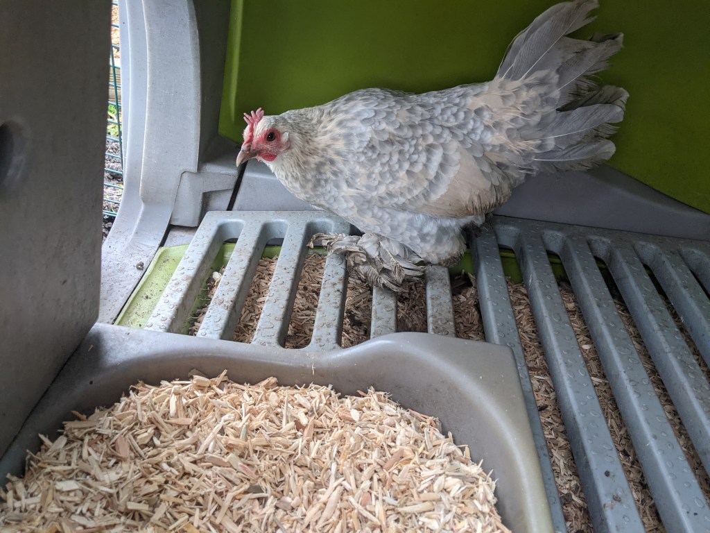 Over in the new coop, Gordon and his girls were waiting at the run door, impatient for their treats. Judging from the new burrow in the corner of the run, the rat was back. So I put their treats in their bowl. This confused them initially, but once one had worked it out, the others followed. I reminded the girls that their job was to lay eggs when the weather warms up. For good measure, I also reminded them that the nest box was where they should be laying. The last thing I want is another idiotic bird like Flora who likes laying her eggs in the poo bucket!