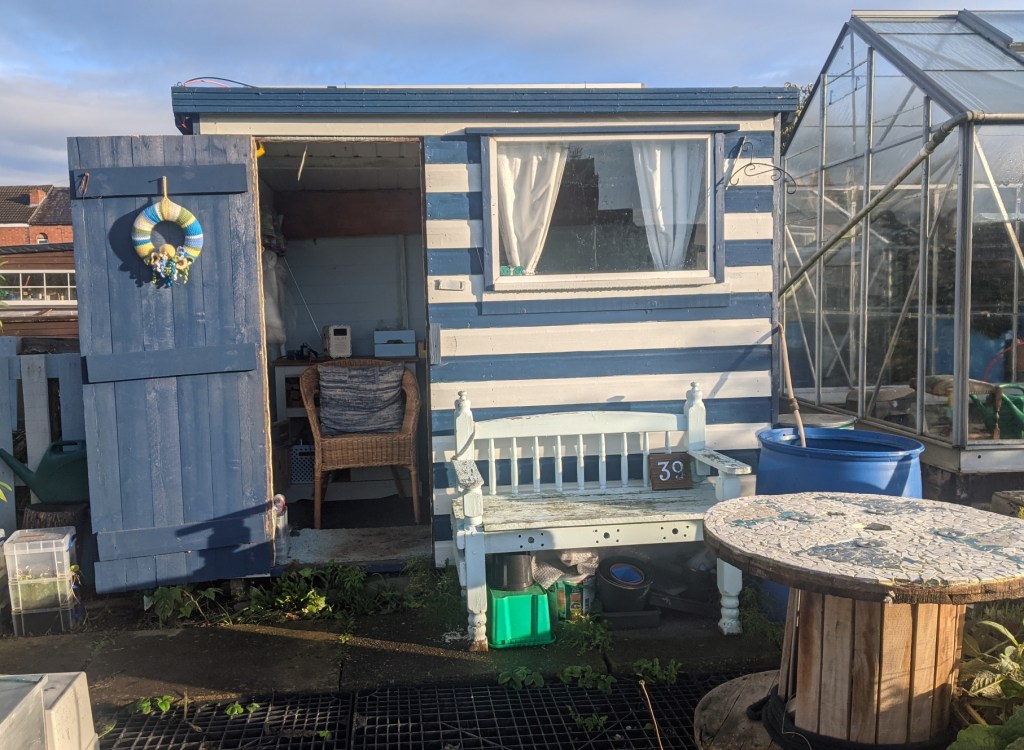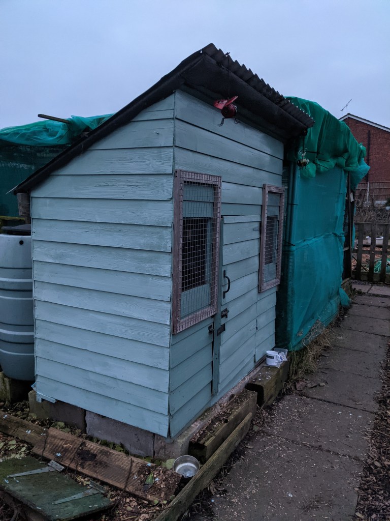 Today was a day of two halves. This morning, I ambled down with good intentions of cleaning out the Nest House. I stopped to say hello to Geoff and Cliff and ended up chatting to them for a while despite the cold. When Derek joined us, we all put our heads together to work out a plan for moving the greenhouse on Plot 8 back a foot to ensure the path from the gate is a consistent width. As it narrows by the greenhouse, it is difficult for anyone on a mobility scooter or pushing a wheelbarrow to get through without risking smashing the glass.