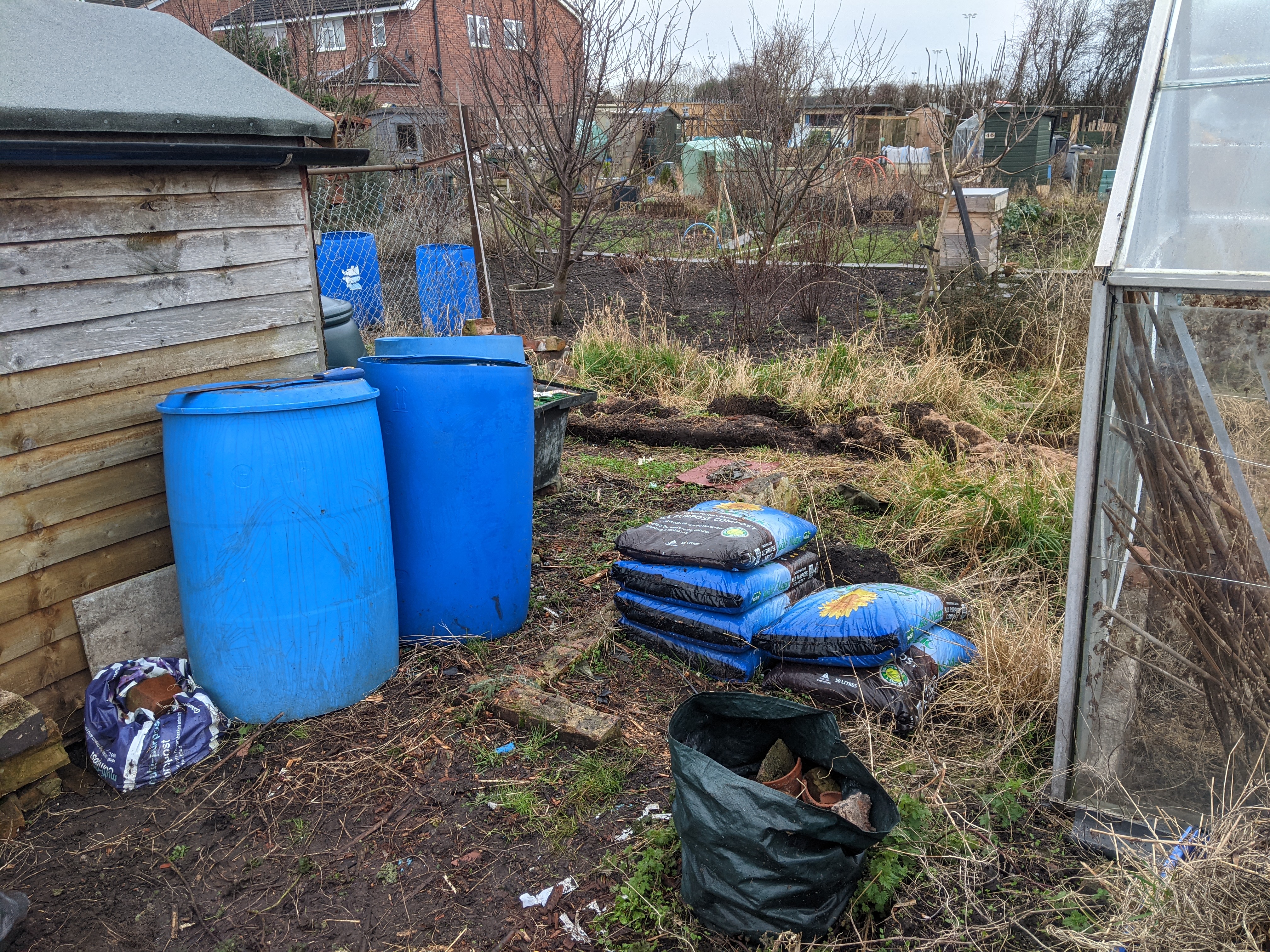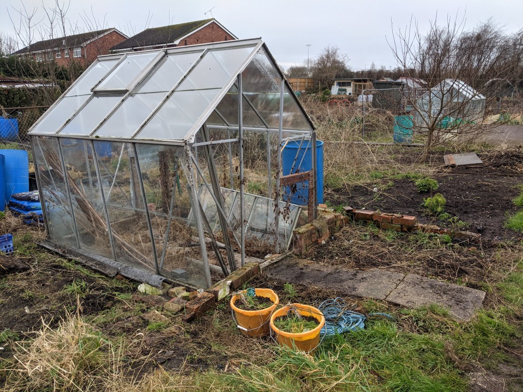 I grabbed a builder’s bag and began to pick up any bits of plastic and broken pots. Between us, we cleared all the old wood, filled a bag of rubbish and removed the worst of the weeds from around the greenhouse.