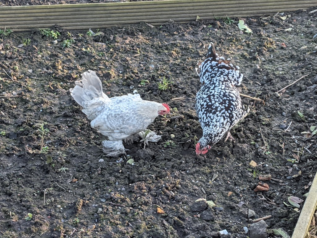 Today, the sun was out, the sky was blue and I finally managed to clean out both chicken coops at home. To thoroughly clean both Omlets, get them dry and put in new bedding took the same amount of time as it takes to clean the wooden coops on the allotment. I know Omlets are really expensive, but knowing the chickens can have a clean, dry nest box in half an hour is brilliant. Cirrus was not impressed with being shut out of the nest box for an hour as I worked. She shouted at me almost without drawing breath for the entire time, joined intermittently by Stratus who loves the sound of her own voice and requires no reason to use it!