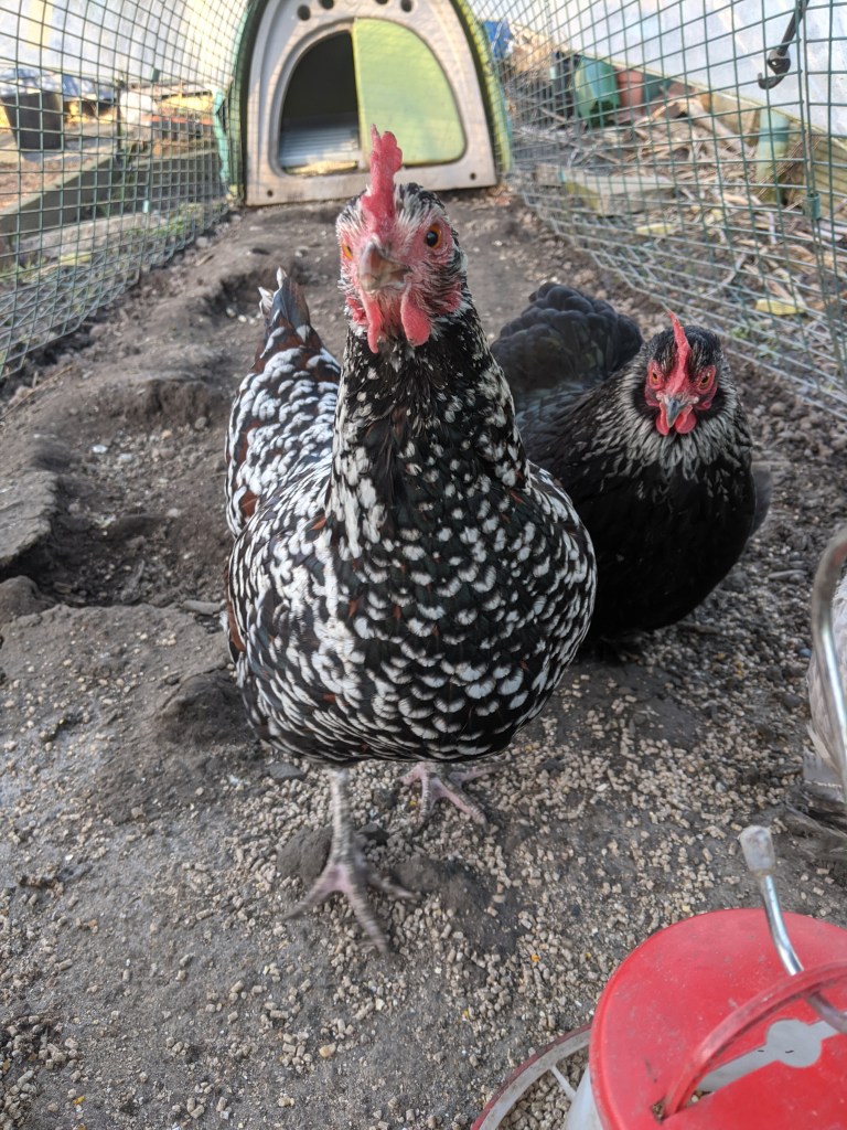 Over in the new coop, Leia and Flora are still ruling the roost. One of the partridge bantam hens was perched up high to escape being picked on by the others. I hand fed her, ignoring the indignant shrieks from the others who were not happy at this preferential treatment. Fresh water and refilled food bowls gave me enough peace to be able to collect an egg from the nest box. The bantam girls haven’t started laying yet, but surely they have to soon?! Triple checking that all coops were secure, I headed back home wondering how many more times I will be attacked by an irate Tommy and a desperate Roxy. There’s no news yet about Flockdown restrictions being lifted and until they are, Roxy is going to be a nightmare to keep happy!