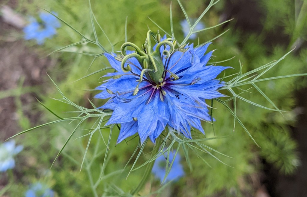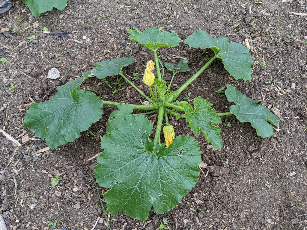 Next, I moved onto the wildflower bed. To my surprise, some cornflowers had flowered. I love cornflowers and had some in my bouquet when I got married. The bed was quickly cleared and I moved onto the back bed, carefully weeding around the surviving courgette plants. I discovered two plants that although they had been badly eaten, were still green. I hope that the removal of the weeds might encourage them to throw out some leaves again. Just as I had moved onto the bed opposite, I heard a cry of pain.