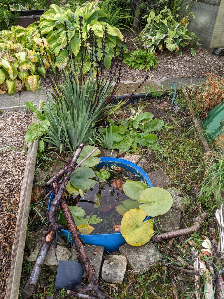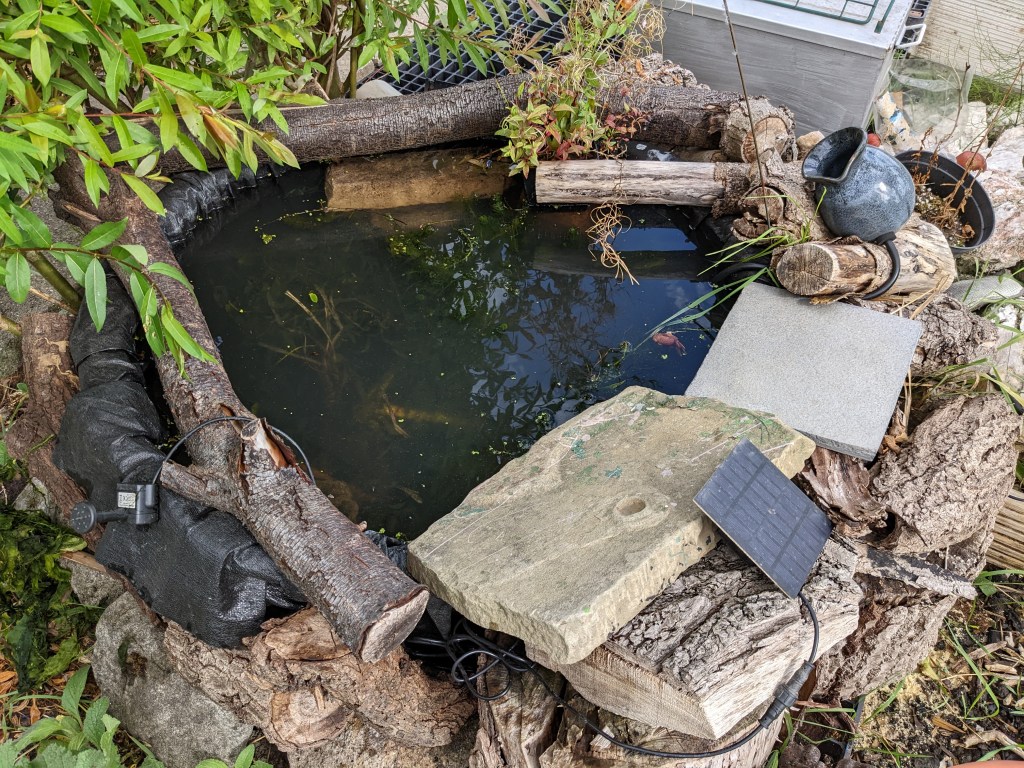 My next job was to top up the ponds. The heatwaves combined with the seemingly endless lack of decent rainfall has led to the water level being very low. Borrowing a hose, I quickly refilled the pond by the shed. The blanket weed had taken over again, so I spent several minutes removing as much of it as possible. Quite where my second plastic goldfish has disappeared to, I know not. Hopefully, with some more restoration work, it will turn up! I tested the pond pump but it has broken. As we don’t have any fish in the pond, it’s not essential but it’s important the water is oxygenated to support the water snails and any other wildlife living in the water. The pump I bought was very cheap and hasn’t lasted very long. I might explore getting a better solar powered one for both ponds.