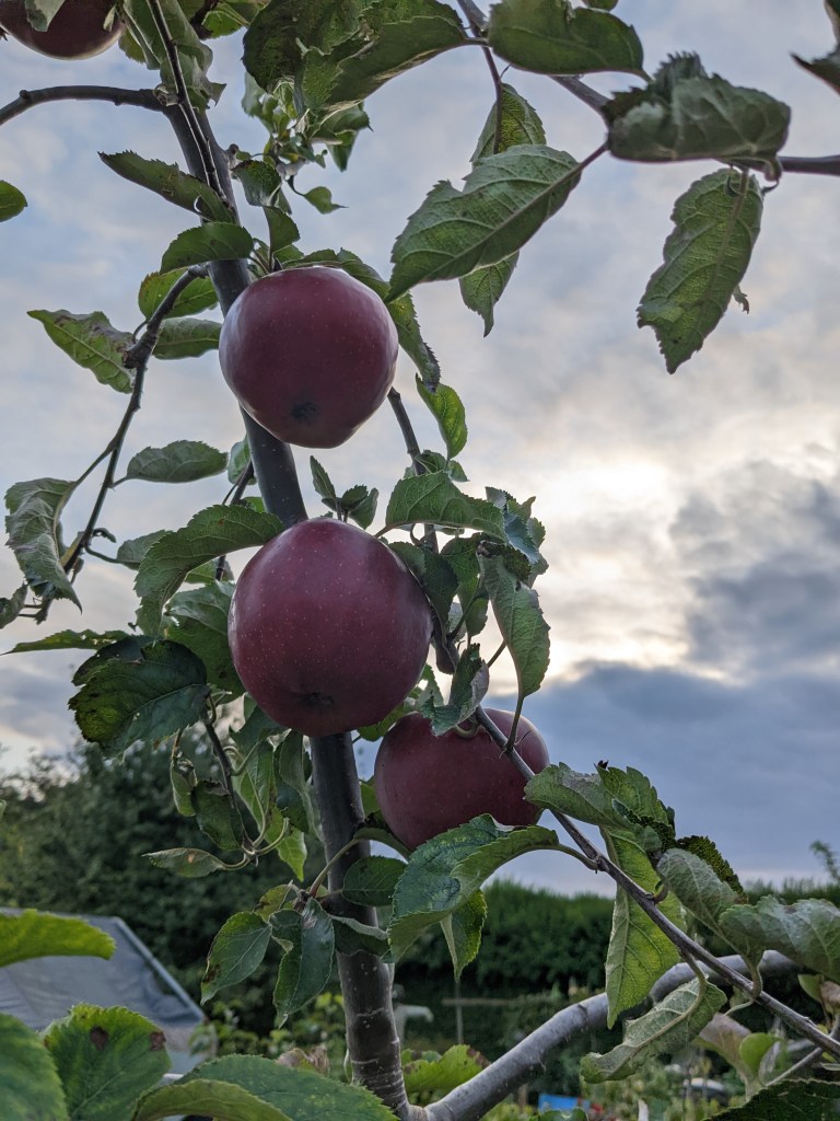 Despite having a very dry summer with multiple heatwaves, somehow the fruit trees on the plot have flourished. These weather conditions were clearly ideal for our three apples trees which are literally snapping under the weight of fruit!