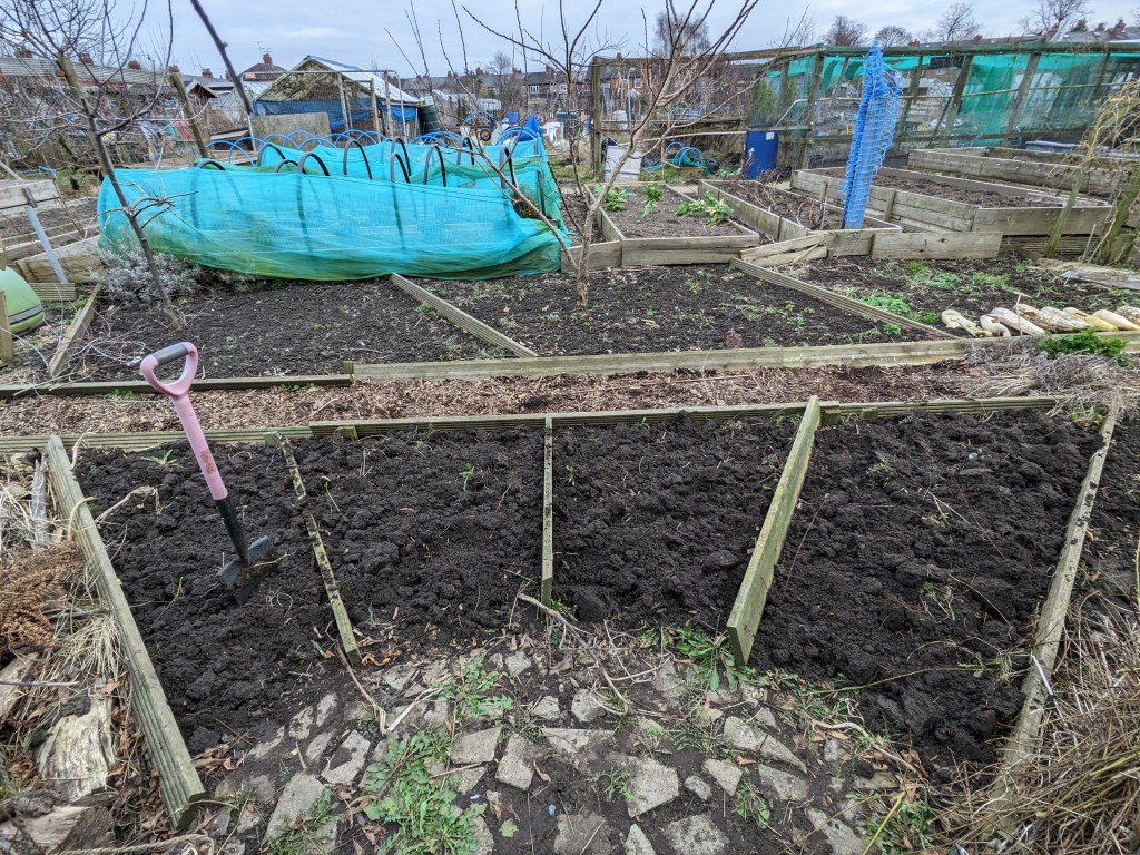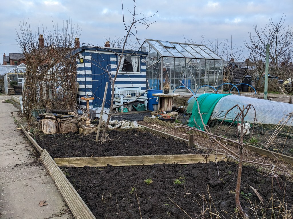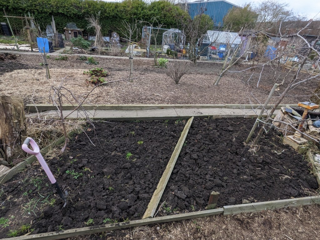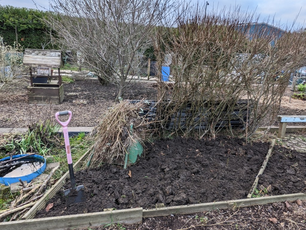 There really is nothing better than getting outside and getting stuck into digging to clear away the cobwebs after feeling under the weather. The relatively dry weather over the past few days has meant that our usually water-logged plot seemed like it might be dry enough to dig over without running the risk of sinking knee deep into the quagmire. Side note – yes, this has happened and yes I walked home in bare feet having lost both shoes and socks much to the amusement of Cliff who was watching the whole debacle!