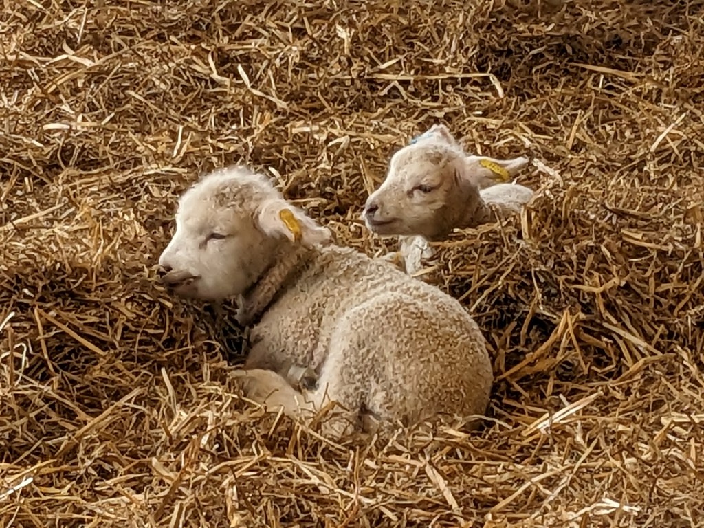 The second lamb took much longer to arrive. Whilst I don’t want to be too graphic, it seemed to take some rummaging for the staff member to find and adjust the lambs position within the ewe. Eventually, a small head appeared, quickly followed by the rest of the lamb. Interestingly, this lamb was entirely white which showed it wasn’t as stressed as the first lamb. The second lamb was quite a bit smaller than the first and took a little longer to stand. Both were able to stand within 10 minutes of being born although they were incredibly wobbly! Leaving mum to bond with her babies, we spoke to the staff member who delivered the lambs, asking what the ewe had had. One girl and one boy! We spent several more minutes watching the little family together. By this time, we were starting to get a little chilly so reluctantly, we left them and went to find some food.