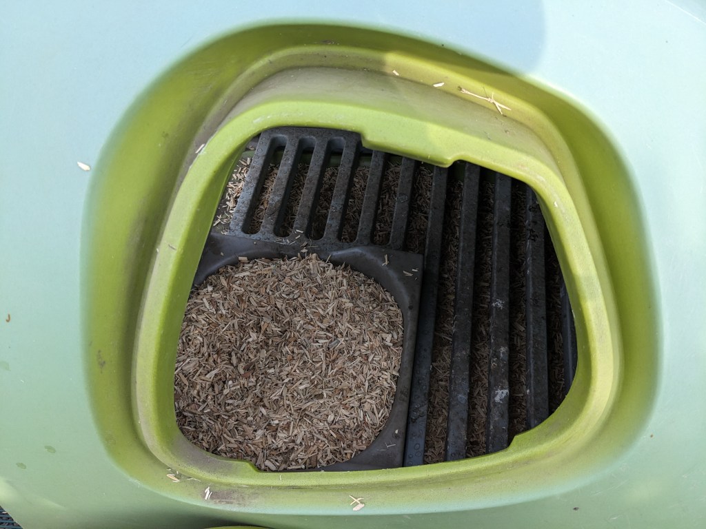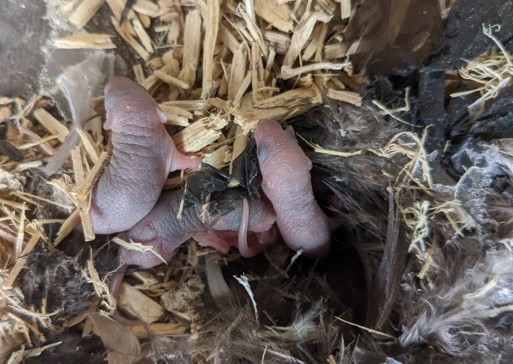 As I removed the boards in the bottom of the Nest House, I discovered a beautiful little mouse nest. Inside, were four tiny little mice. Milliseconds after my discovery, nosey Flora appeared. Chickens can and do eat mice and I didn’t want these defenceless mice to be gobbled up. I chased Flora out of the Nest House and covered up the nest with a board to protect them as I finished cleaning. It was quite a quick job, made easier by not having to endlessly chase Rey out of the way. By the time I was putting in the new bedding, Polly was loitering, clearly wanting to get into the nest box. That was my cue to hurry up.