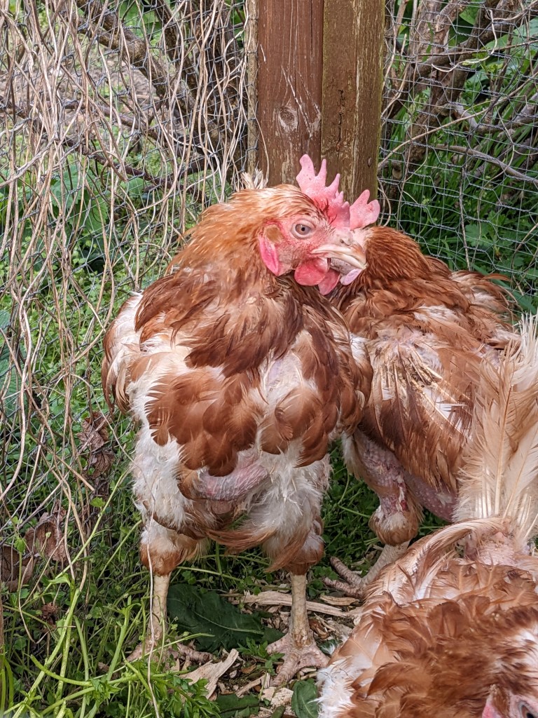Of course, it didn’t turn out that way! When I arrived on site I said hello to Cliff and Geoff who were making final preparations for their new hens. Cliff had reserved ten hens from the British Hen Welfare Trust which is an amazing charity who rescue ex-battery hens and re-home them. Once the girls hit 18 months old, they are no longer commercially viable as they won’t lay an egg every single day. So animal rescue charities like the British Hen Welfare Trust, Fresh Start for Hens and many more, approach farmers and rescue the girls before slaughter. They often arrive on site in a very sorry state. Stuck indoors in crowded conditions, these poor girls have little to no understanding of what the life of a chicken should be. They don’t know how to scratch, how to sunbathe or have a dust bath. Even eggs sold as free range are not what most people would envision as free range – a large field with chickens roaming everywhere. With the added impact of six months of Flockdown, these girls may not have been outside ever.