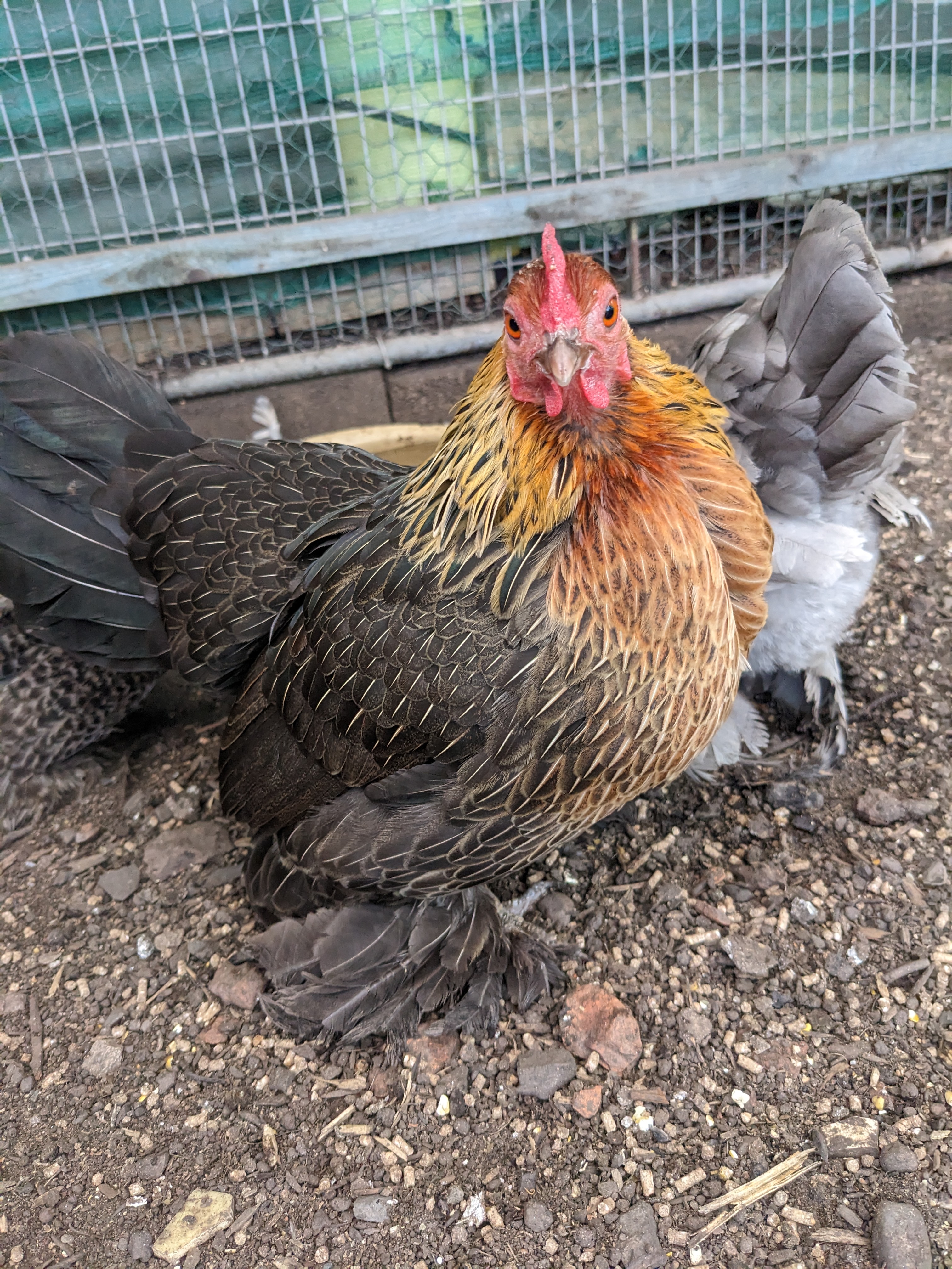 No, the main hazard, which I had forgotten, lulled into a false sense of security by the bantams, is the stealth poo. Granted, it probably isn’t the best idea to wear flipflops and shorts to the allotment when it’s raining. However, I really do resent being pooed on when I am busy feeding Gertie. Gertie has a habit of constantly adjusting her feet while being fed. This requires a level of concentration to make sure she doesn’t fall off whilst attempting to hold the food bowl steady.