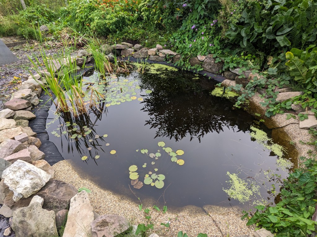 As I approached the pond, the bindweed took over. It’s a nightmare weed and one that is incredibly difficult to get rid of. The white roots snap so easily and even the smallest root left in the soil will grow. The small child in me quite likes tackling bindweed as it’s the garden version of spaghetti. Once you have some in your arms, you can twist it and pull it. The tension helps rip it out and clears the area more quickly. I plodded onwards until my arms and back ached. Looking at my watch, I was astonished to see it was nearly seven o’clock! Stopping only to take a few photos of my work, I headed home to check on Gertie.