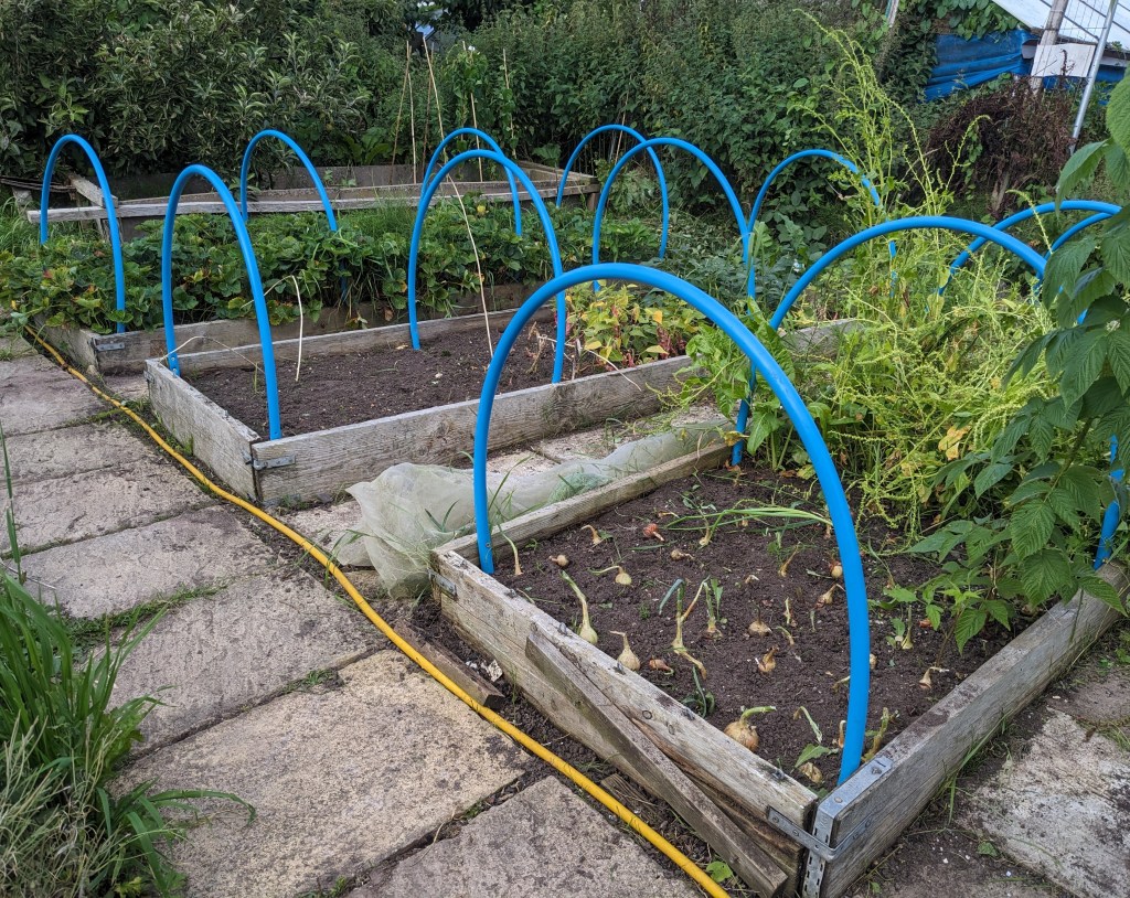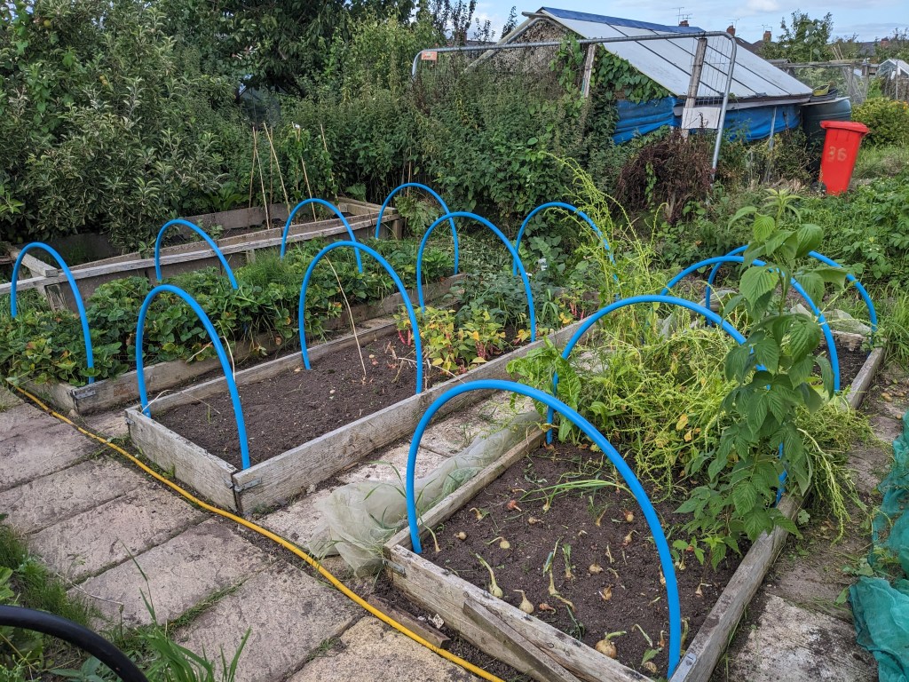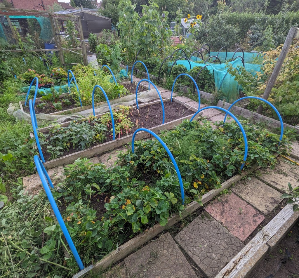 So the next few days, I’ll be concentrating on clearing the weeds from the next two beds on the plot. This will mean that the path side of the allotment will be clear and I can begin to think about putting in winter crops of potatoes. The other side of the allotment and the fruit section will be the last to be cleared as I’m hoping to have help in clearing it.