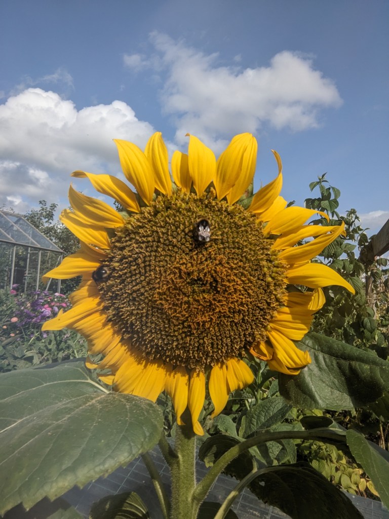 This afternoon, I headed down to the allotment with the sole intention of blitzing the weeds. I promised myself, I wouldn’t get distracted or procrastinate especially as our Warden is checking plots regularly to make sure they are up to scratch! Once the shed was open, I put my phone onto charge and went to check on Maude and Mavis. These two chickens are incredible. Despite being ancient and belligerent, Mavis sprinted down the run and jumped impatiently up and down by the door until I gave them some fresh greens. Mollified, they then tucked in and ignored me for the rest of the afternoon.