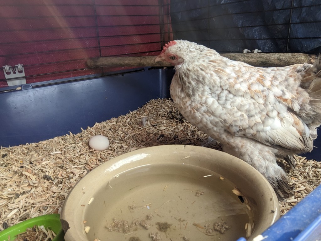 Her comb has improved in colour the last couple of weeks and she is eating and drinking well. But an egg is a great sign that she is happy and as healthy as she can be despite her blindness and wobbliness.