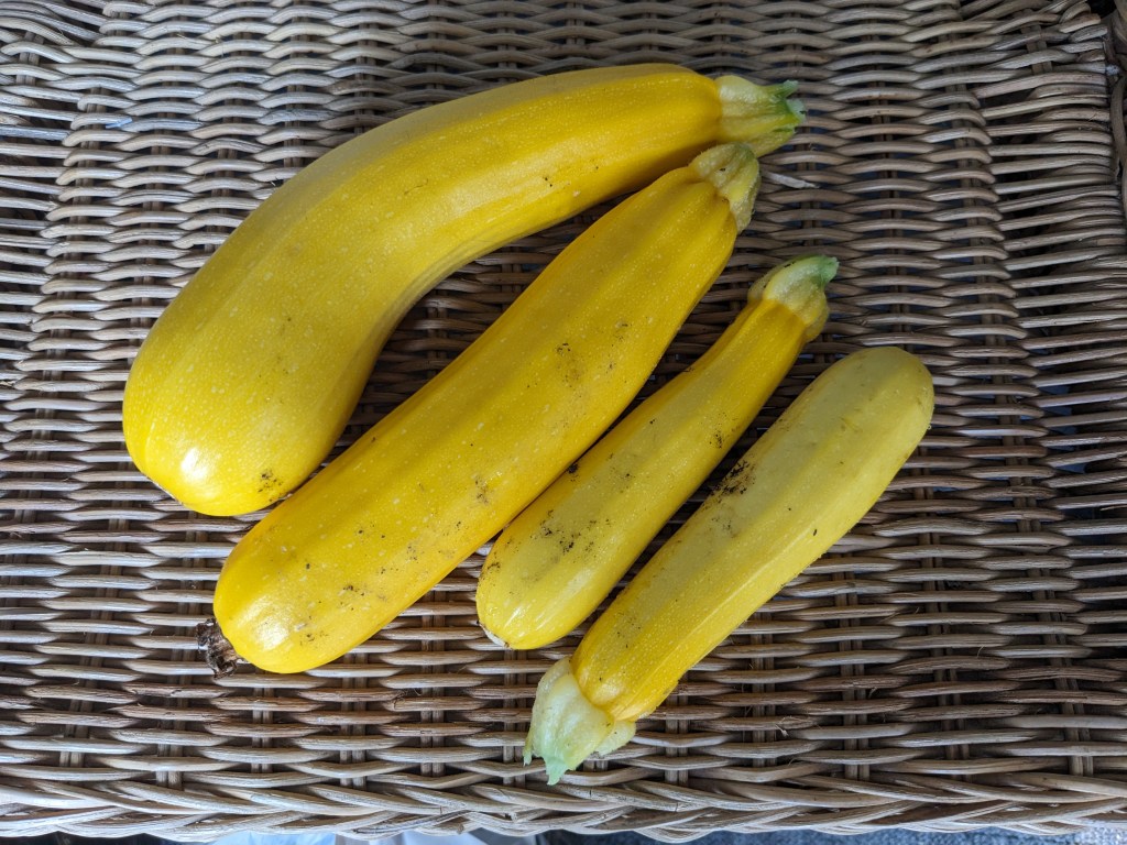 Back in the shade, I decided to give up for today. Before I left, I threw in some courgette into each coop. In every coop, this was greeted with great enthusiasm and I suspect that it would be polished off completely before I arrived home. With the shed locked and all cold drinks finished, I hauled the bag of potatoes (and four small yellow courgettes) home.