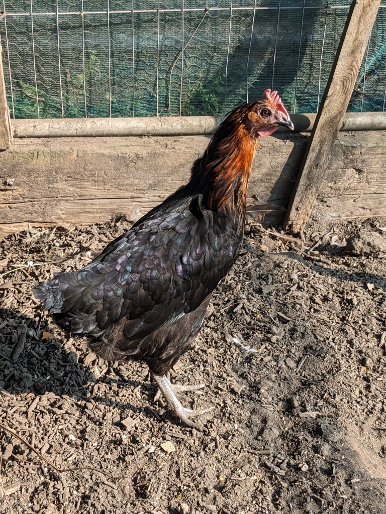 My first job was to check on all the chickens. Although many chicken keepers worry about their girls suffering in the cold, it’s actually the heat which is the most dangerous. Chickens huddle together overnight in the winter, sharing body heat and keeping themselves warm. Like dogs, chickens can’t sweat and can easily overheat. A supply of cool fresh water, shade and damp earth to lie in are essential for the chickens to keep cool. I refilled all of the water bowls and checked on the food. They all had enough left. I spotted Liz and Sarah had kindly put another courgette outside the New Coop so I told the girls they could have it before I left.
