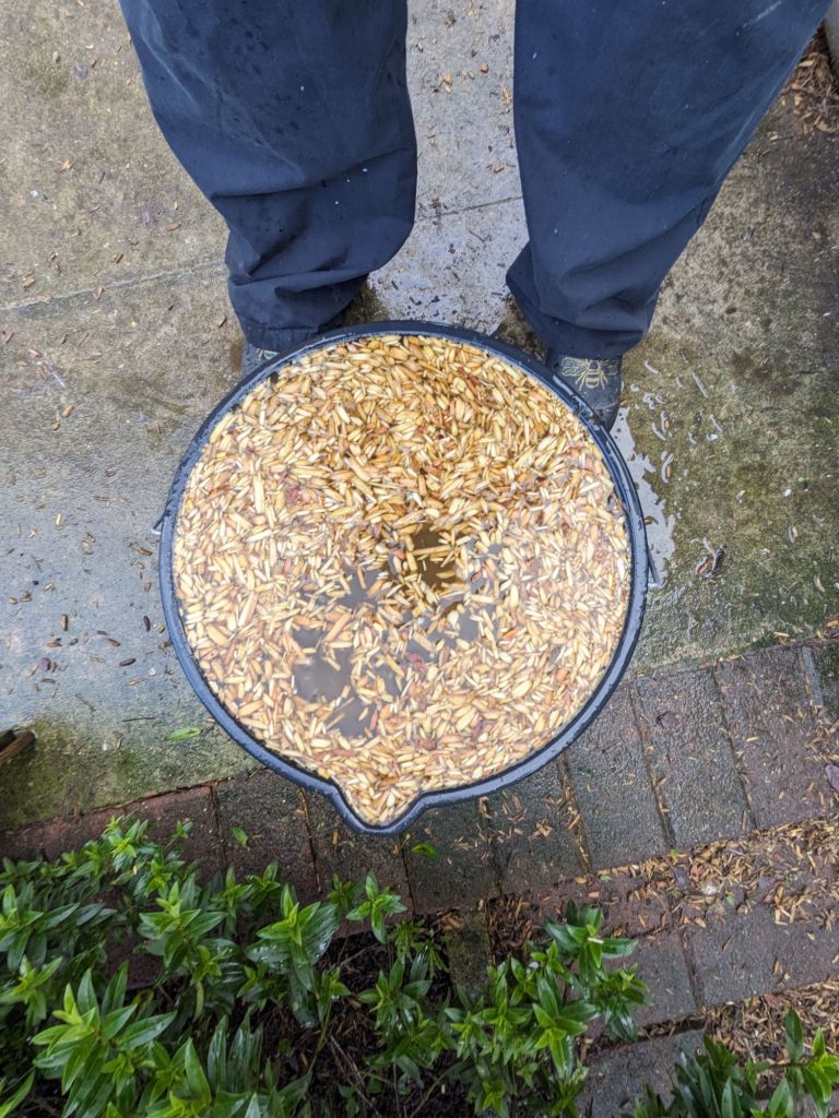 To my horror, I filled the bucket and almost half filled it again. The old bedding was completely sodden. Apologising profusely to the quail, I cleaned out the base, the food and water bowls and, for good measure, cleaned the shelf and the top of the coop.