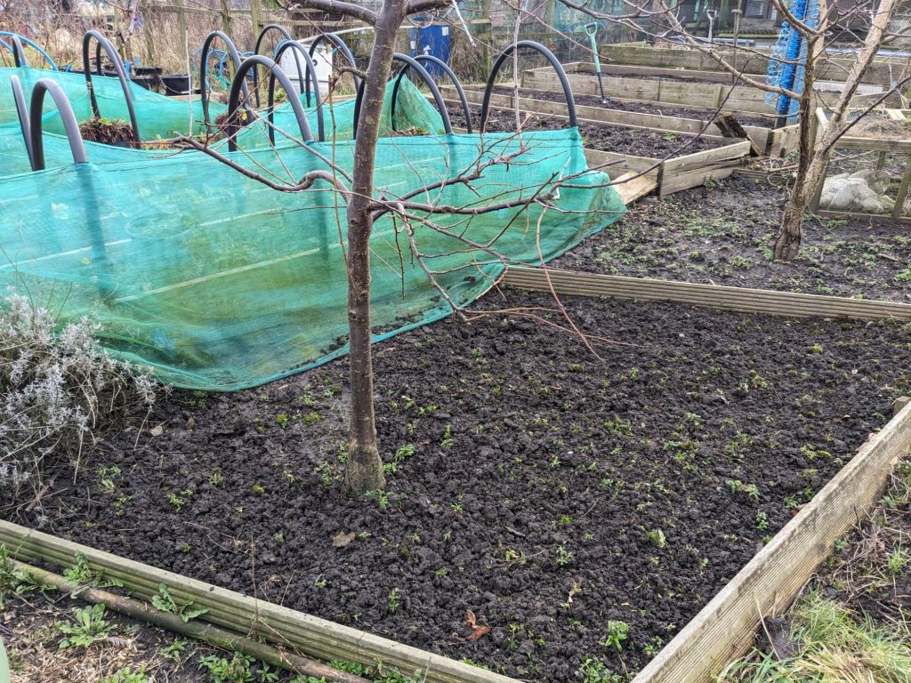 With a couple of dry days (finally!), I managed to get down to the plot and finally start sorting out the growing beds. Grabbing my trusty Wolfgarten tiller, I began on the top bed by the pond. I decided due to the heaviness of the soil, which was still holding a lot of moisture, I would just do a couple of the beds. As with these things, you get into the zone and before you know it, you’ve done three beds and wondering if you have time to do a fourth before lunch.