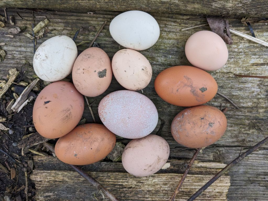 Leaving them in peace, I headed back to the Main Coop to see how it was drying. It was still wet but the bottom boards were dry. I put them in and added a thick layer of fresh bedding. I’m hoping this will encourage the girls to lay more consistently. Before I left, I threw out some corn for the girls in the run. Interestingly, they seem to have paired off, Flora and Dotty, Polly and Rey and our two new girls. I’m not sure how long these alliances will hold but it’s always fascinating to see how the dynamic changes.