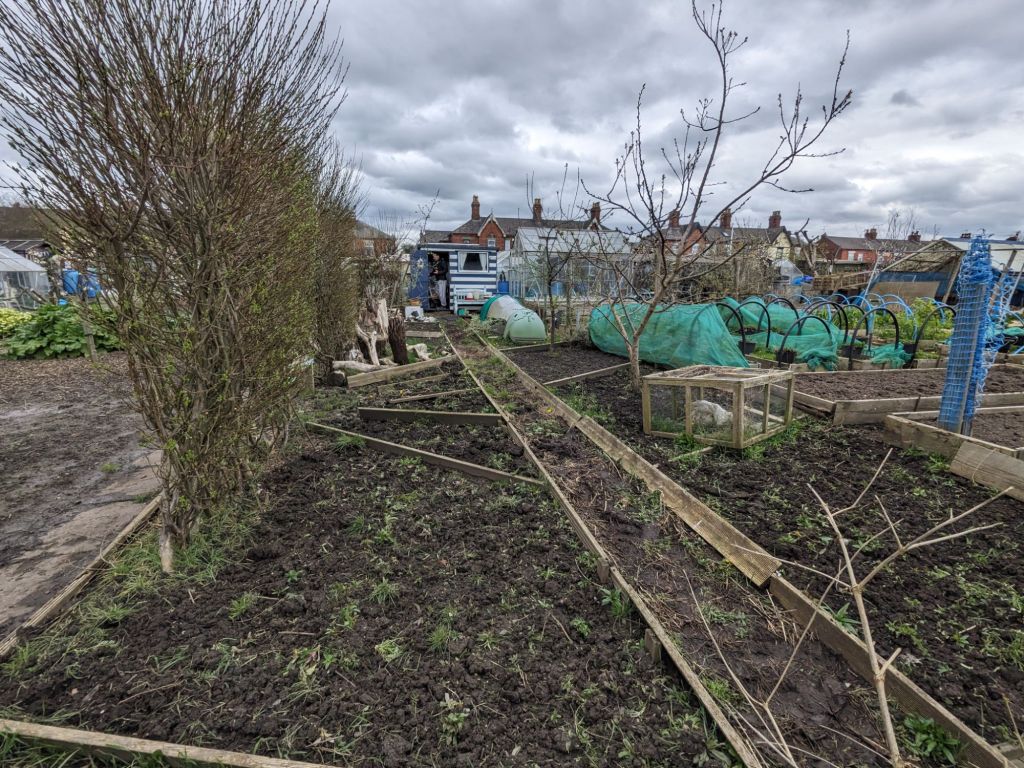 This afternoon, we both strolled down to the plot to get going on some jobs before the forecast washout for the rest of the week. It’s frustrating as the plot is only just beginning to drain after the last deluge. Our first job was to check on the new girls in the Main Coop. There seems to be an uneasy truce between Polly and the new girls. Both sides had some scabs on their combs but all the time we were down there were no skirmishes, thankfully.