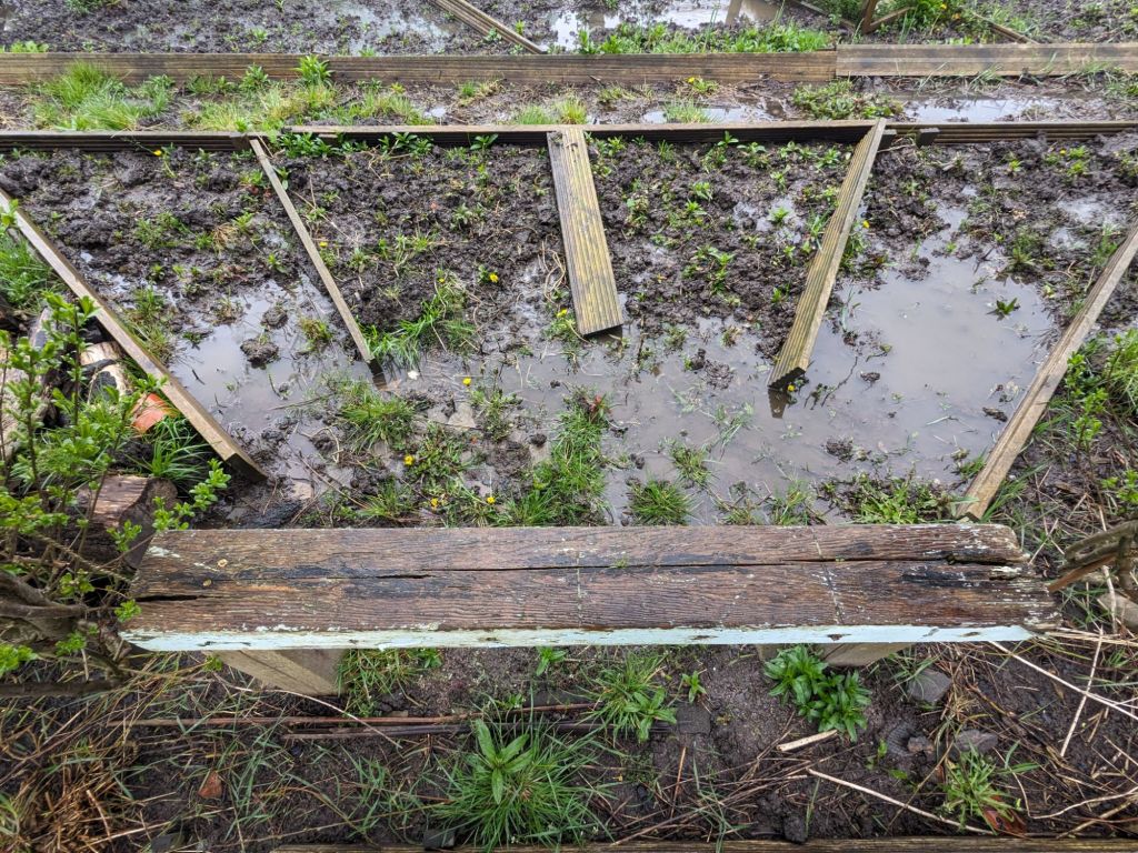 The plot is completely flooded. The water table is arguably above the level of the soil and the entire plot is absolutely saturated. There is no way I will be able to plant anything for several weeks assuming that we have no more rain in that period. It’s just completely frustrating as I’ve done everything to try and stop it flooding including planting trees, the willow arch and screen, double digging, raising the soil level, you name it. Nothing works.