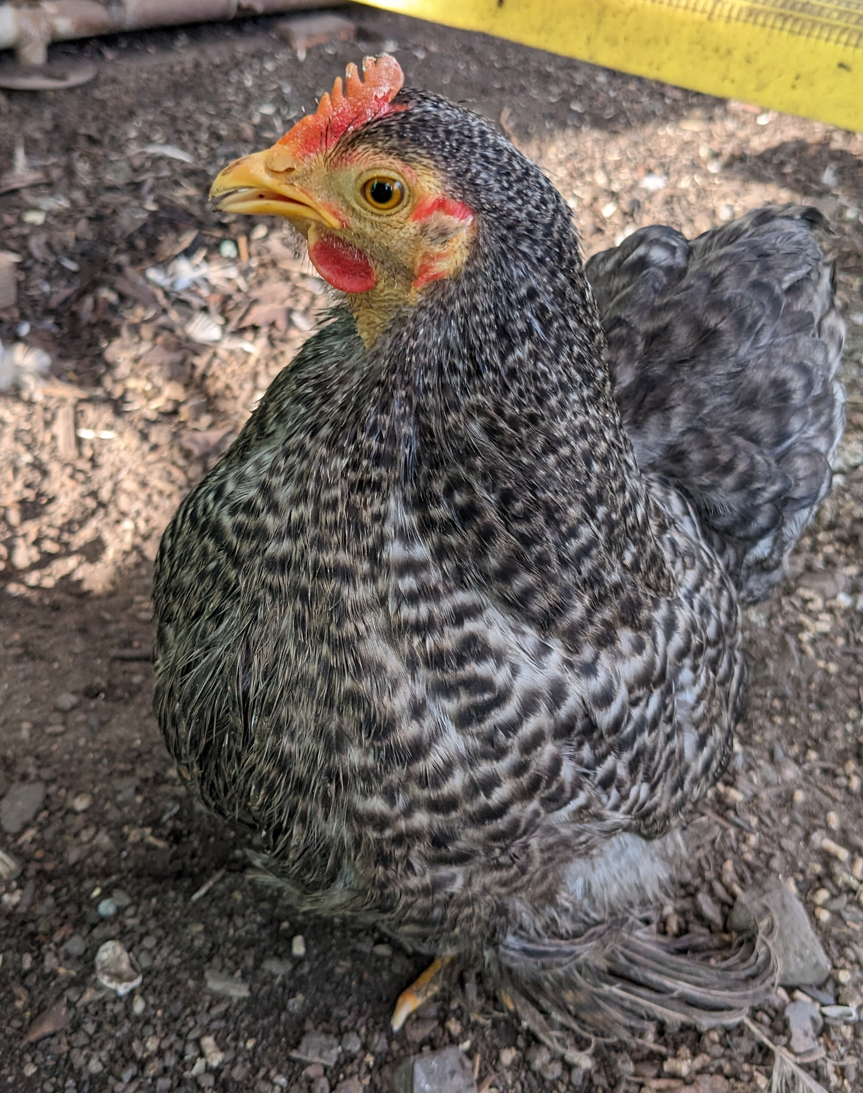 Leaving my husband to sort out the water in the main coop, I headed across to the new coop. Upon opening the door, I spotted Connie lying on the floor on her back. I dashed over to find that she had passed away. It was a shock as she appeared her usual bossy and sassy self only yesterday afternoon. She showed no signs of illness whatsoever. Connie had the most beautiful strange little chirrup when she spotted you walking towards the coop. This chirrup would increase in volume and frequency as you opened the coop door, only pausing as she calculated whether she could make a dash out the door. She was a very friendly chicken with a wicked ability to sneak past you silently and peg it out the coop door. Queen of the coop until Mavis moved it, she rapidly became Mavis’s right hand enforcer, bossing the other girls around and ensuring her share of the treats. Some might argue, more than her fair share of the treats.
