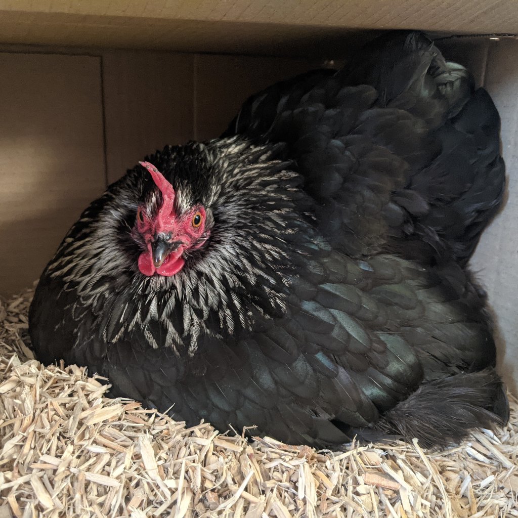 We got Trixie in April 2021 to keep Roxy company. Roxy was dumped with two warrens in a cardboard box outside the allotment during COVID lockdown. We’d never had bantams before and she didn’t cope with integrating with the bigger girls. So I went on the hunt for a little friend for her, finding a lovely local breeder who had a single silver birchen bantam. Sassy with a bossy attitude, she was always in charge, no matter which birds she was living with. Trixie had a particularly soft spot for sunbathing on the lawn, often splayed out in such a way, I worried she had died. The joke was always on me as whenever I approached, very concerned, she would open a sleepy eye and glare at me for disturbing her.