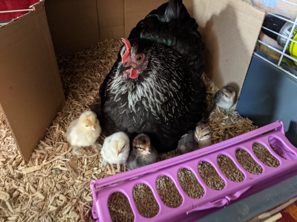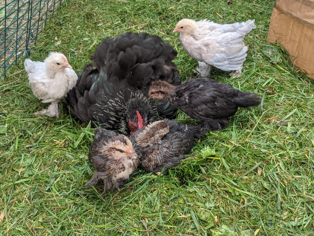 Trixie also hatched Gordon and his sisters. If she’d been any bigger, she would have rivalled Emily (our chicken with PTSD) in broody anger and attitude. She was a fantastic mum and all of the chicks thrived under her care.
