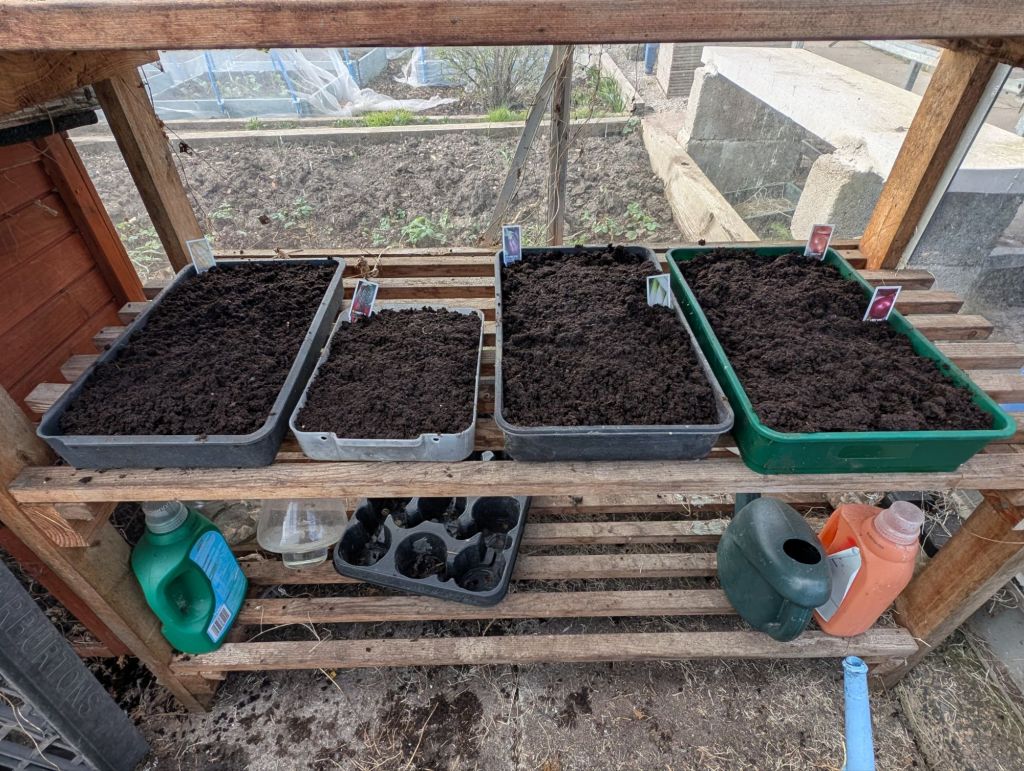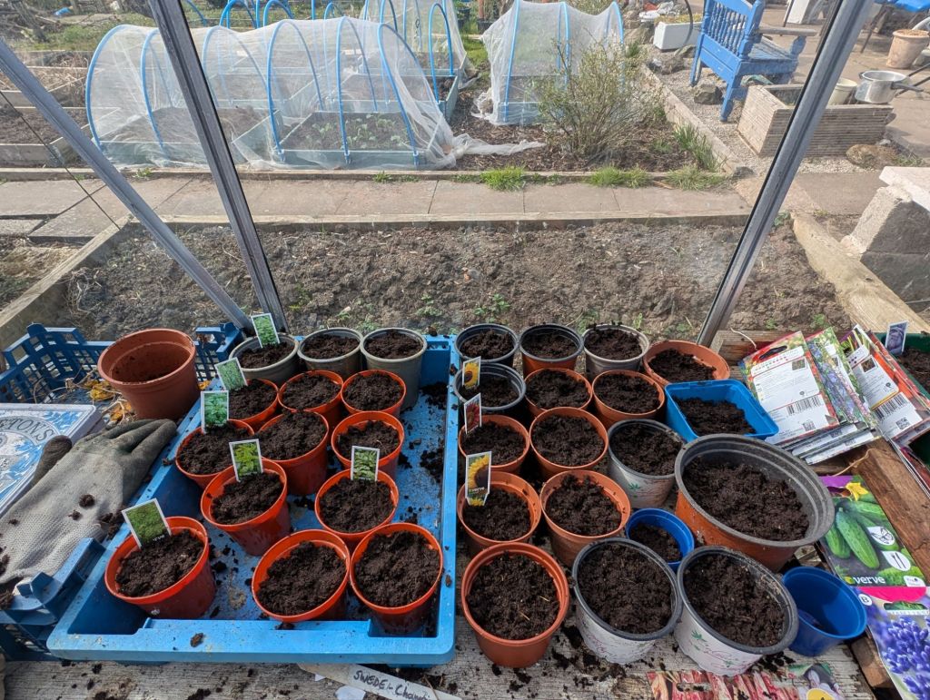 I kept aside the flower seeds too. These will go in the sunburst beds by the willow arch and it seems a little early to plant them yet. But I did plant some sunflower seeds. I’ve picked three varieties, trying to emulate Alan who is the King of Sunflowers. How he manages to grow such a variety and so brilliantly year after year, is beyond me! This year I have gone for Giant, Dwarf Yellow and Brown just to see what happens.