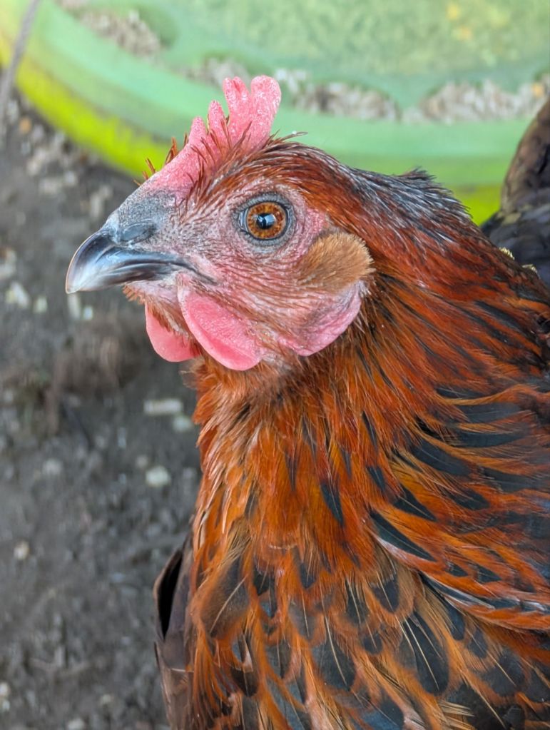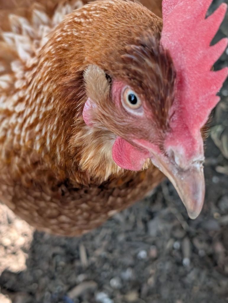 Next, I fed the chickens. All of them demanding treats and I spent a few minutes cleaning out and refilling their food and water bowls. But all this was to delay the biggest job for today. It’s a job I loathe doing as it takes forever – cleaning out both nest boxes. Sweeping out all the old bedding takes forever, especially in the nest house as there are so many nooks and crannies to try and clear before spraying the entire inside with anti-mite stuff. After clearing out the Nest House, I headed over to the New Coop and cleared that out too. The nest box was made by Will and it’s a marvel. The roof is extraordinarily heavy and needs propping up when cleaning out. I borrowed a plank of wood from Sarah and Liz and under the close supervision of Foxy and Bonny, I swept out all the old bedding.