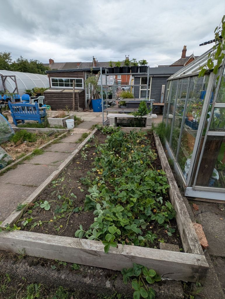 This afternoon I ambled down to the allotment ready to get stuck into the jungle that used to be our plot. With rain forecast, I started at the top of the plot, clearing the strawberry bed which had disappeared under several hundred bindweed and mare’s tail plants. Clearing the bed took over an hour and multiple overflowing weed buckets tipped onto the compost heap. Finally, it was clear and I took a quick break to work out what to do next.