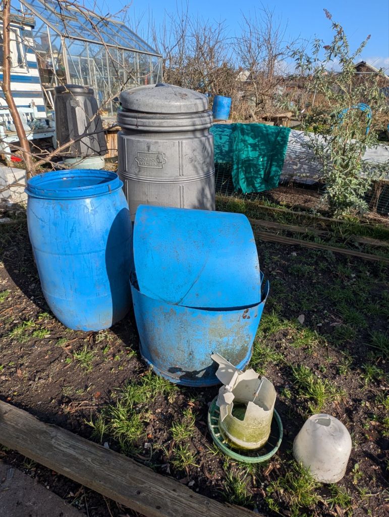 Our next task was to remove the compost bins as Derek told us that he suspected some of the rats were using them. All of the full and very heavy, my husband emptied them before making a collection of them all near the shed at the top of the plot. Armed with two spades, we set to, making sure the compost was moved away from the front of the main coop. The aim is to remove any incentive for a rat to make itself at home anywhere near our coop.